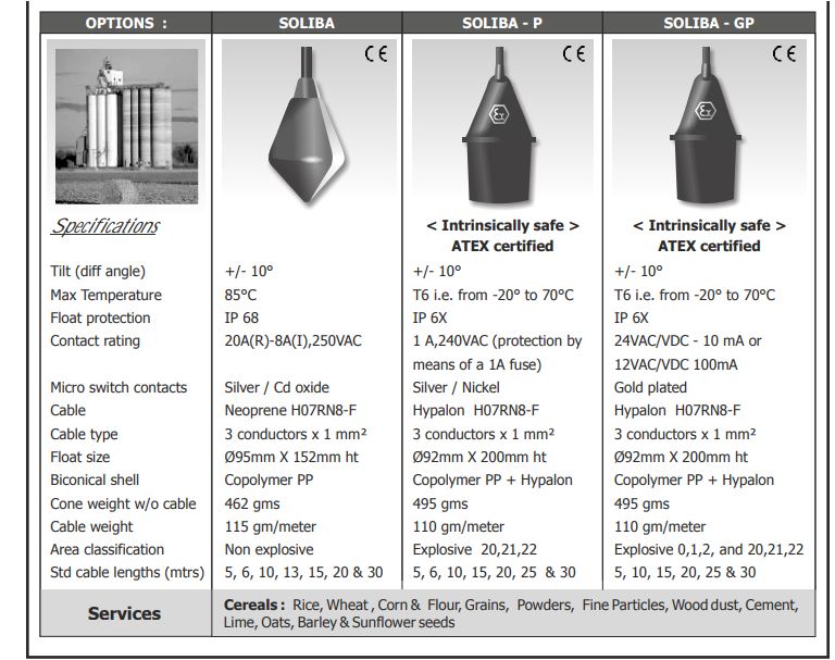 Easy to install through cable suspension. Very reliable for high level detection of solids.
