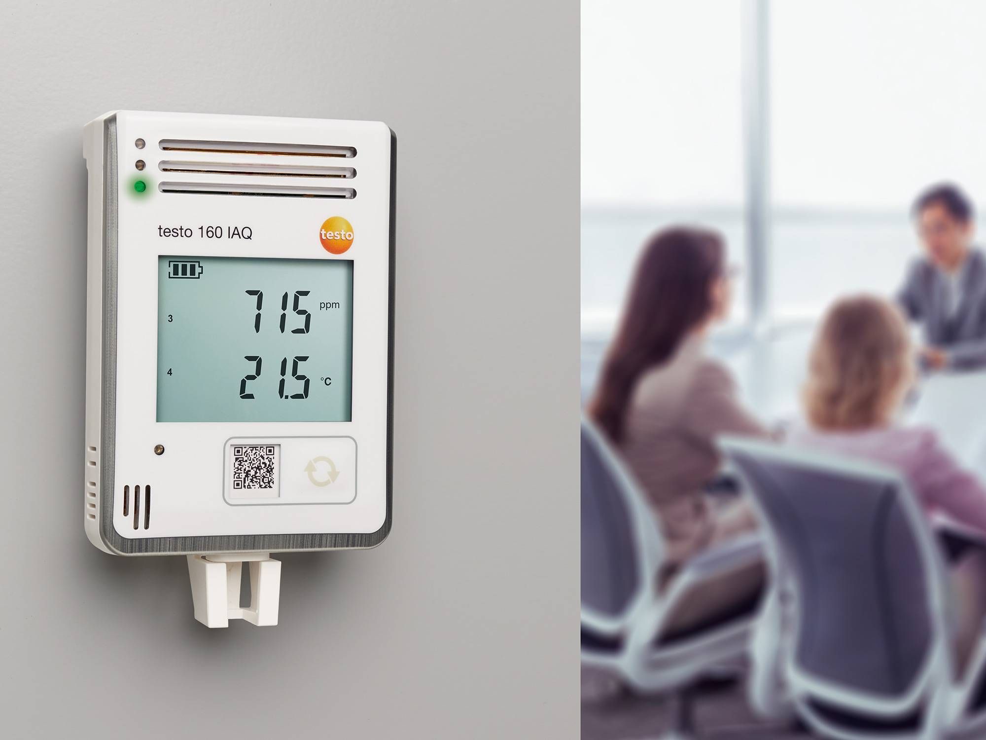 If there are a lot of people in a room, the air quality deteriorates. Reliable monitoring is particularly important, because indoor air quality is linked to our well-being. The WiFi data logger testo 160 IAQ is ideal for monitoring indoor air quality in facility management.